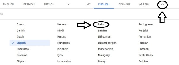 Step Four – Choose the language that you want the document, book, or booklet, to be translated into. Click on the small upside down triangle to see more language choices. Follow the arrows in the two pictures below.