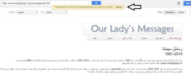 At the top of the screen, Google Translator may also ask you if you want to disable “safe mode.” Click to disable safe mode and this will enable you to open links on the Our Lady of Medjugorje website, as well as copy and paste items from the website.